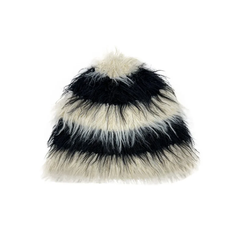Odm Jacquard Logo mens Knit Winter hat ;Color Block Stripe Fluffy Beanie; Warm Fuzzy Knit Winter Hat ;Mohair Beanie