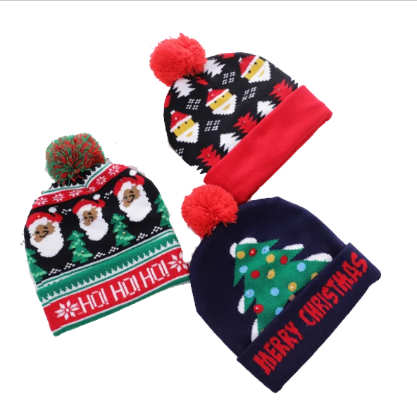 Unisex LED osvětlená ošklivá vánoční svetr čepice, novinka přetkaná vánoční čepice pro oslavu |