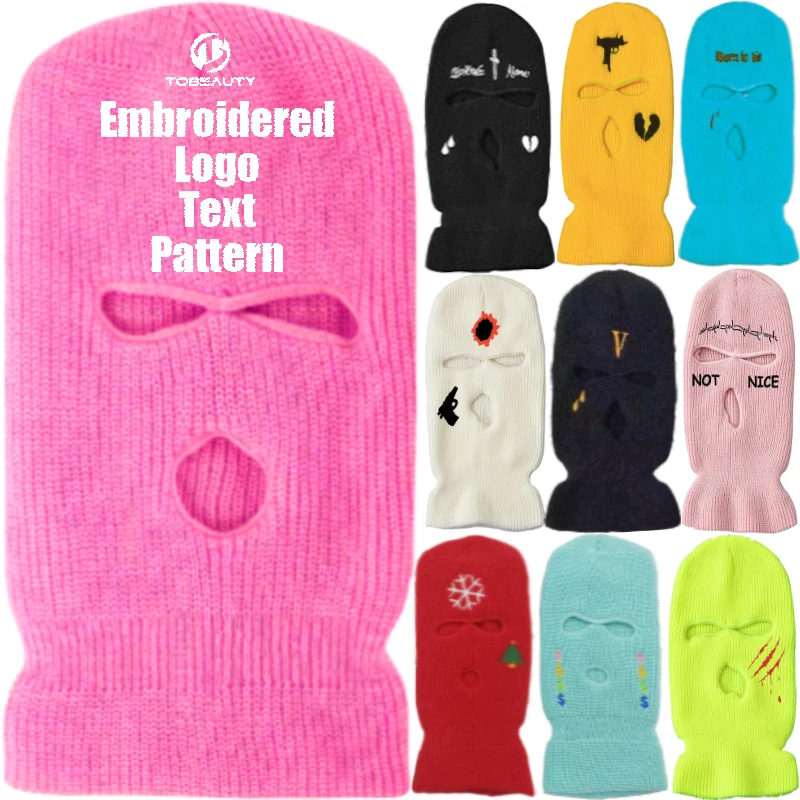 Order your Custom Embroidery Logo Outdoor White Black 3 Holes Neon Balaclava Men Knitted Ski Mask from To Beauty today and experience the ultimate in winter protection and style.