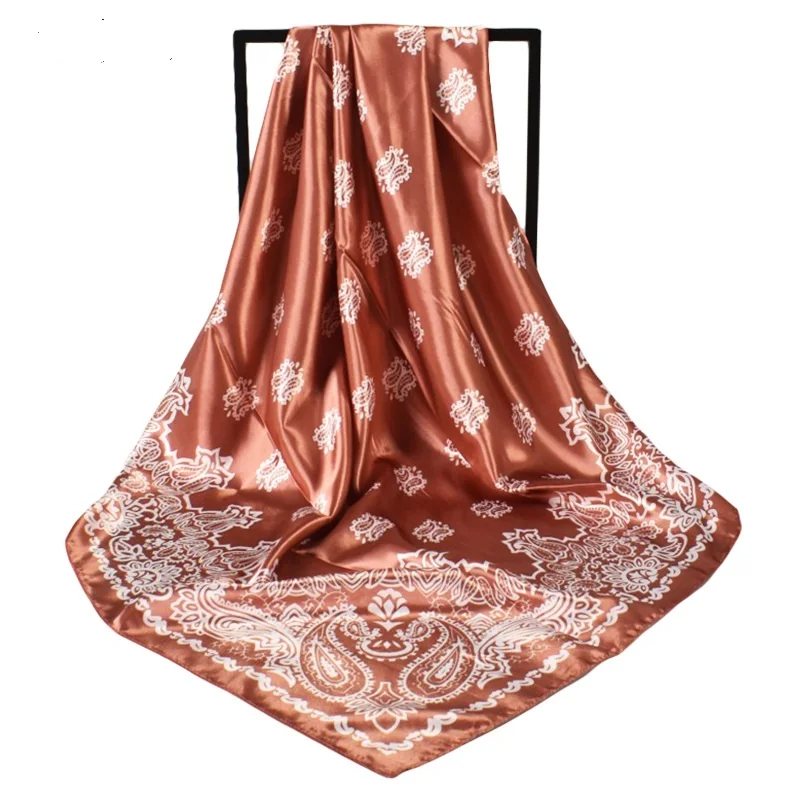 Wholesale new personalized fashion Cashew flower printing Lady 90*90cm satin square scarf imitation silk scarf |